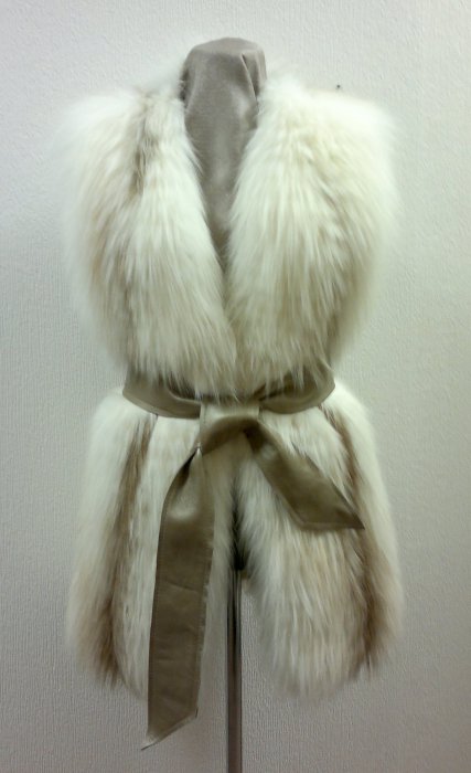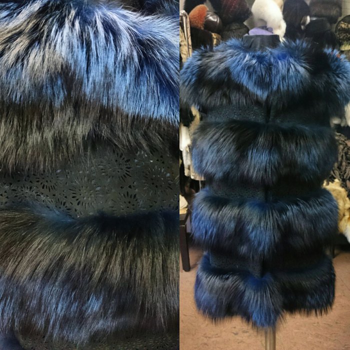 В наличии! Жилетка из меха серебристой лисы крашеной. Расшита перфорированной кожей. Размер 42-44
