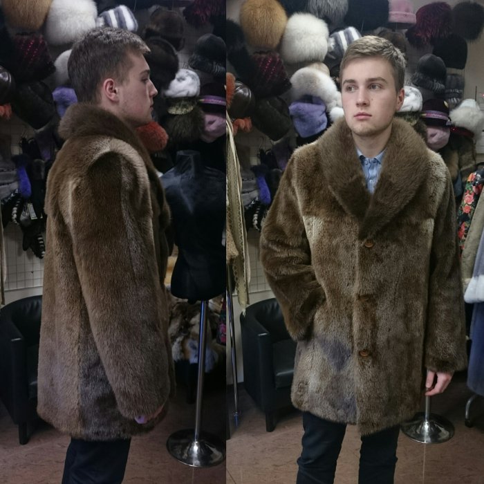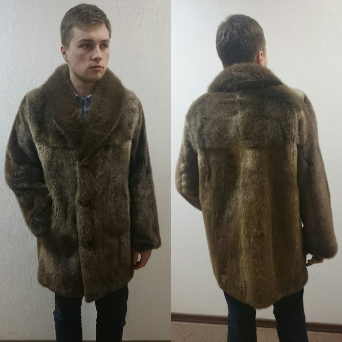 Мужская куртка из меха волка с кожей, воротник из меха бобра Размер 64