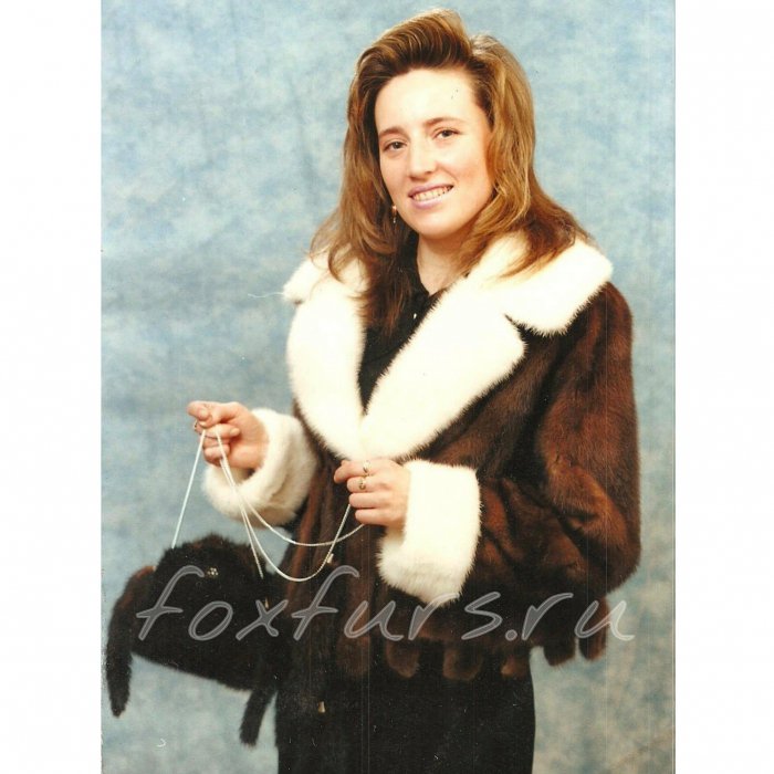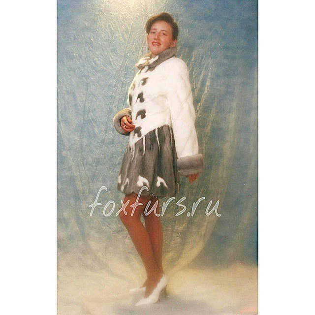 Комбинированное пальто из меха норки (норка "сапфир", белая)