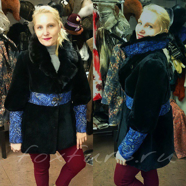 !Перекрой из старой шубы! Жакет комбинированный, из меха овчины и норки с кожей