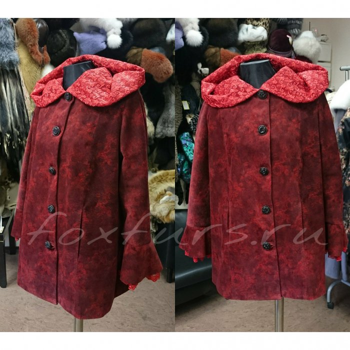 Пальто из замши с гипюром, размер 62. Воплощаем любые идеи заказчика.