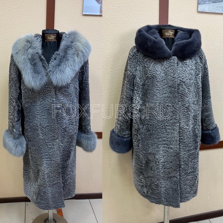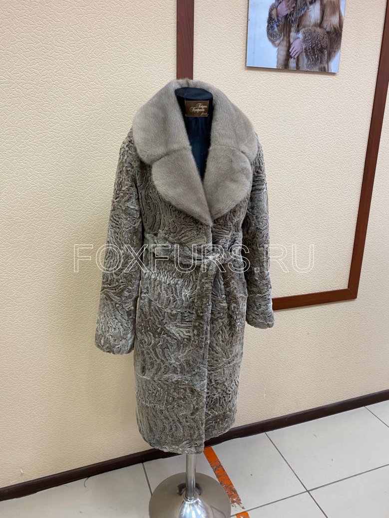 Пальто из меха каракульчи гулигаз с отделкой из меха скандинавской норки. Выполнено на заказ, возможен повтор.