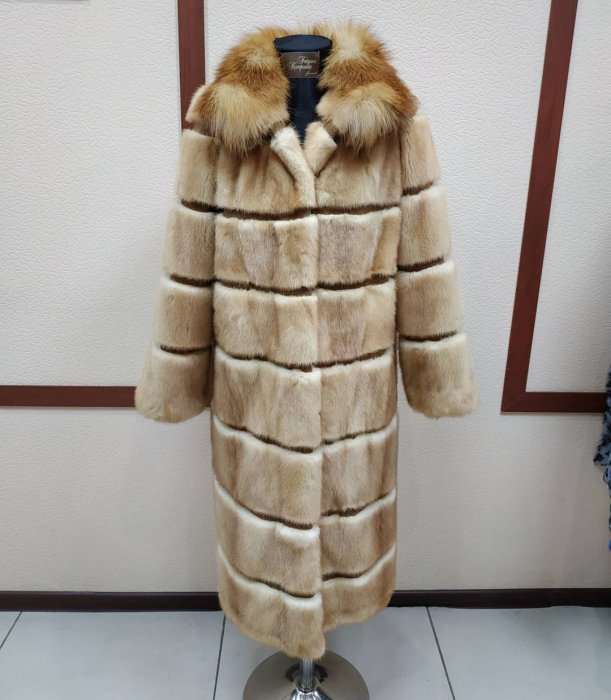 Пальто из меха бобра с воротником из норки, сшито на заказ