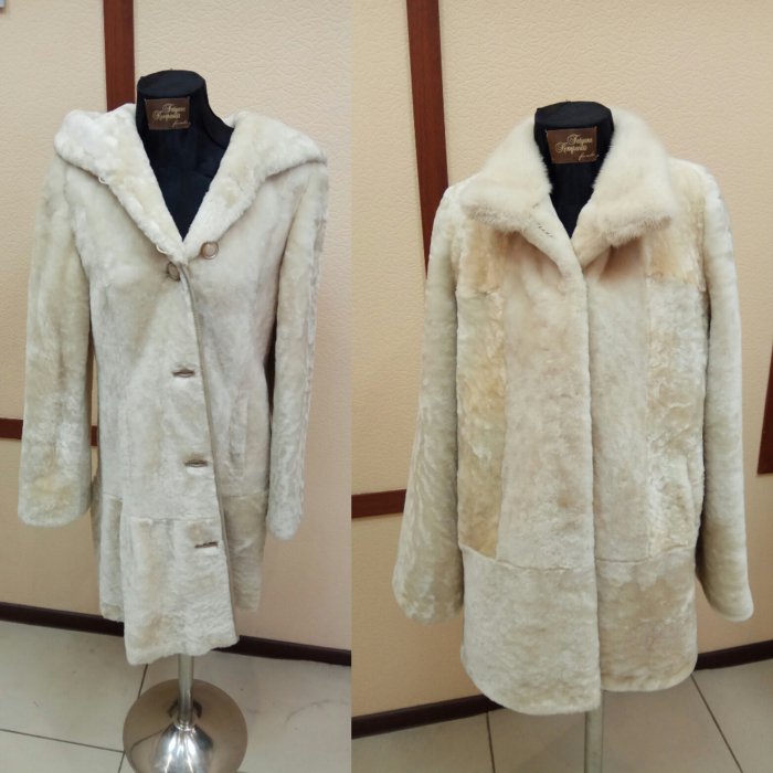 Полный перекрой пальто из меха овчины.