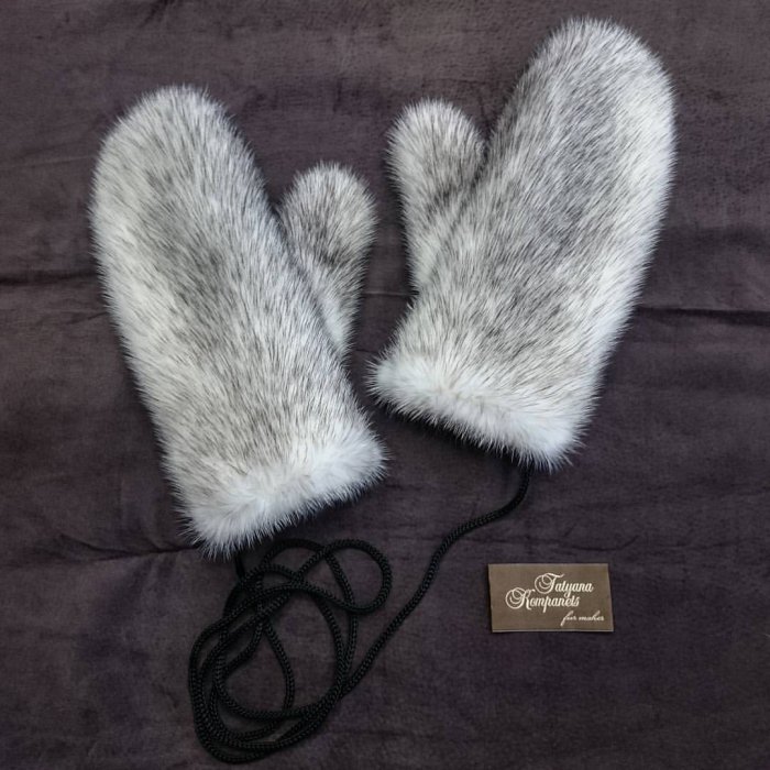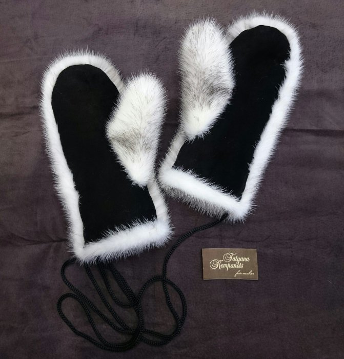 Рукавицы из меха норки "крестовки" с натуральной замшей