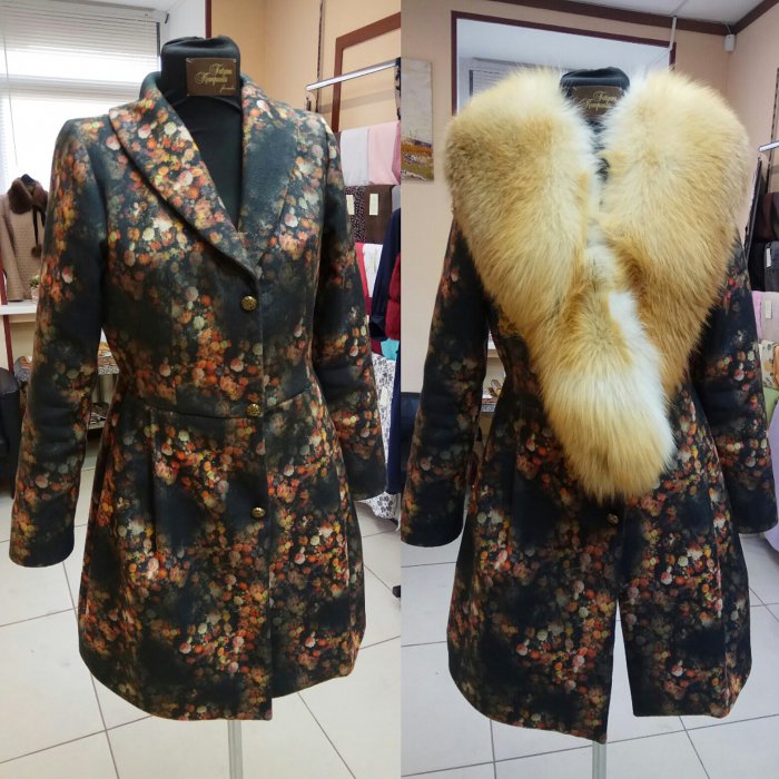 Пальто из кашемира , воротник из меха лисы на подкладке