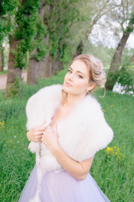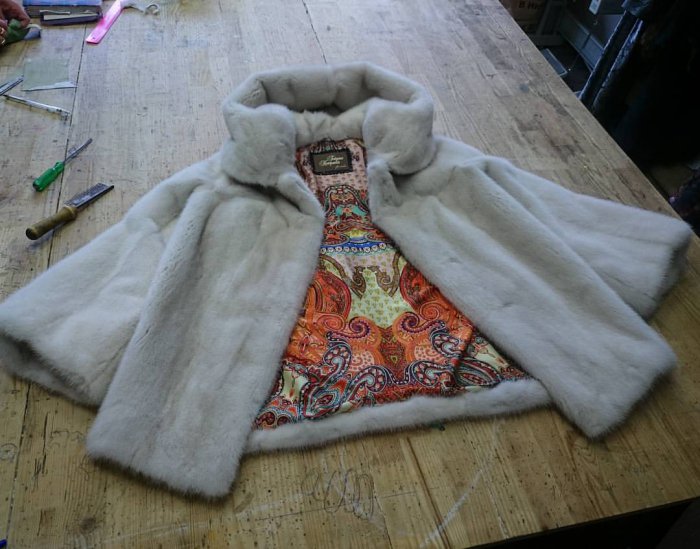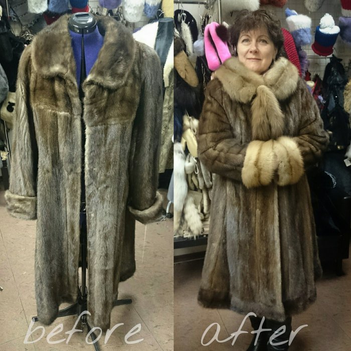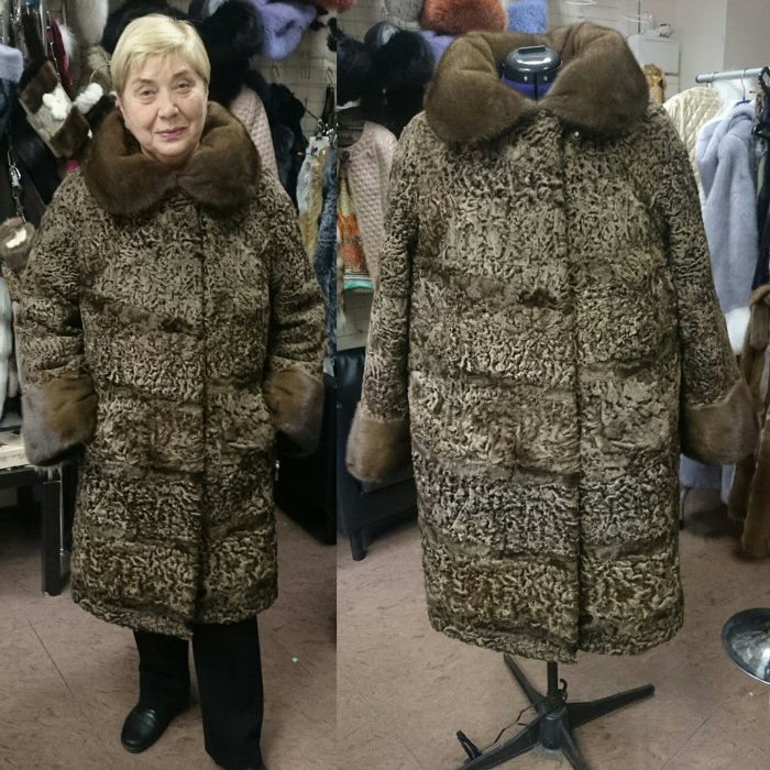 Полный перекрой изделия из меха каракульчи, воротник из меха норки